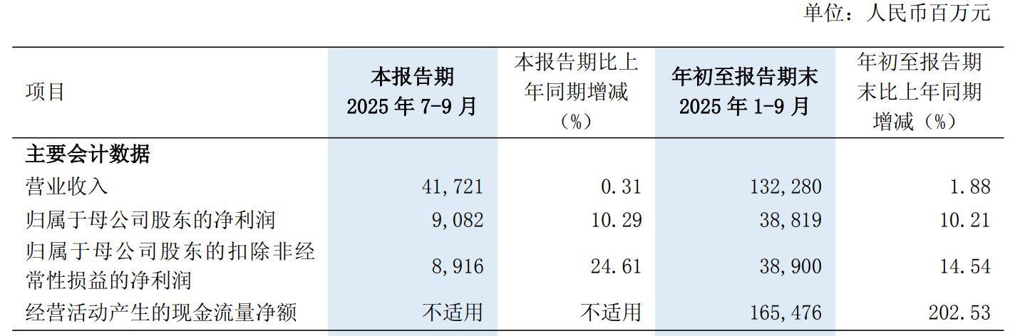 财报显示,2025年前三季度,浦发银行实现营收1323亿元,较上年同期增加25亿元,增幅1.88%;实现归母净利润388亿元,较上年同期增加36亿元,增幅10.21%;资产总额继续攀升至98922亿元,距离10万亿大关近在咫尺。
