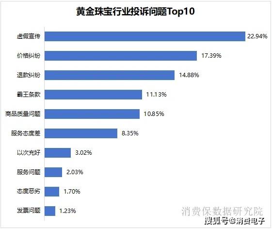 无论是线下门店购买还是网购,消费者都极容易掉进虚假宣传的陷阱。报告揭示,黄金珠宝行业投诉问题呈现高度集中化特征。其中,虚假宣传相关投诉占比达22.94%。不少消费者反映商家存在欺诈诱导行为,如将“K金”标注为“足金”,或以“免费换新”名义诱导消费,实际却收取高额工费