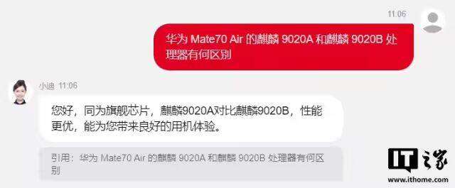 11 月 6 日消息,华为 Mate 70 Air 手机今日开启预售,4199 元起,首次可选麒麟 9020B 和麒麟 9020A 两个处理器版本。