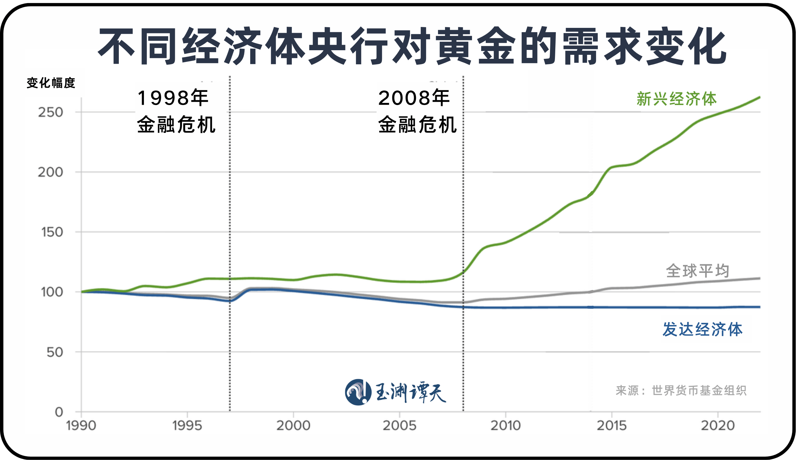 谭主想分享另一个趋势:新兴经济体的央行已经成为购金的主要力量。自从2008年金融危机后,新兴经济体购金意愿显著提升。