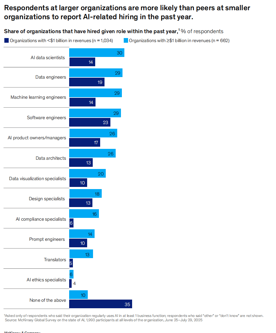 大企业在AI相关岗位的招聘比例,是中小企业的两倍。