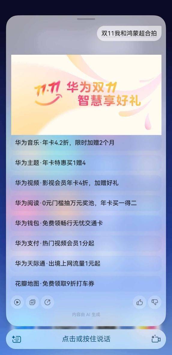 还有小艺,现在是我的比价神器。我看中一件衣服,用指关节“圈”一下,点“问问小艺”,它就能帮我全网比价,省去了自己搜索比价的繁琐。双十一期间小艺还有福利大放送,唤醒小艺说“双11我和鸿蒙超合拍”一键领取超多好礼。这个双11,我真是靠我的鸿蒙5手机,从头省到尾。如果你用的也是华为手机,试着也升级到鸿蒙5.1,然后去华为支付、小艺里领取你的专属福利吧!