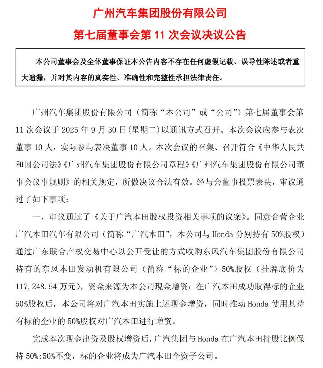 11月10日,广汽集团发布重磅公告,公司已与本田、本田中国及广汽本田签署增资协议,各方将共同对广汽本田进行增资,增资后三方维持50:40:10的股比不变。根据协议,广汽本田注册资本将由5.41亿美元增加至约8.67亿美元,此次增资旨在强化广汽本田的资本实力,支持其业务发展和战略推进。
