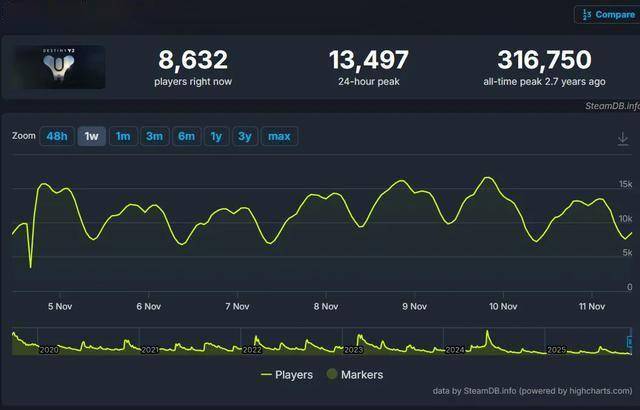 曾经是销量和玩家代表的《命运2》近年来出现了大幅下滑。在最近的财报中,索尼表示对《命运2》的销量和玩家在线数据深感失望,导致产生2.04亿美元的减值损失。