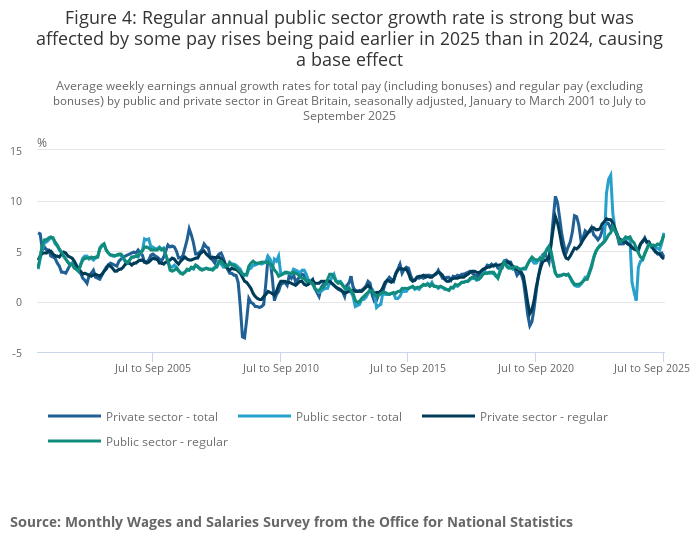 此外,英国公私部门薪酬涨幅分化明显:公共部门6.6%,私营部门仅4.2%。