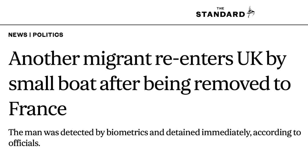 11月10日,英国内政部证实,出现了第二例非法移民被遣返法国后再度返回英国的案件。内政部表示,案件所涉及的男子在被生物识别技术检测到后,立即遭逮捕,并将被尽快送回法国。