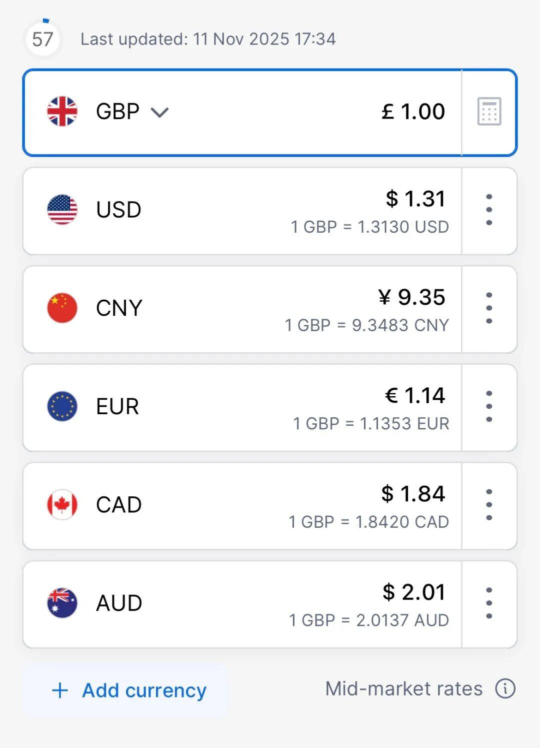 截至发文时(2025年11月11日),英镑最新汇率情况如下: