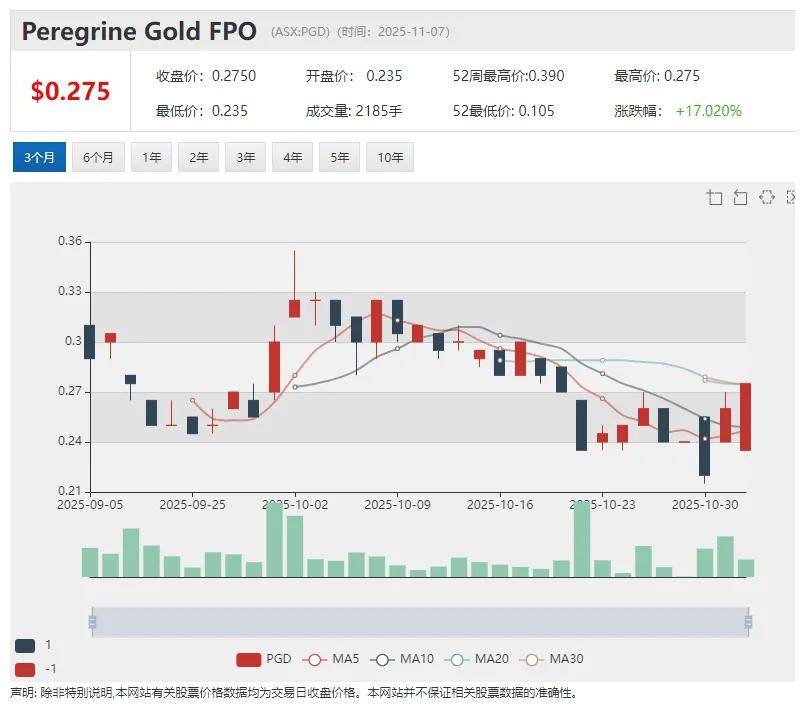 澳华财经在线数据库显示,PGD最新价0.275澳元,已发行股本9848万股,市值2708万澳元。