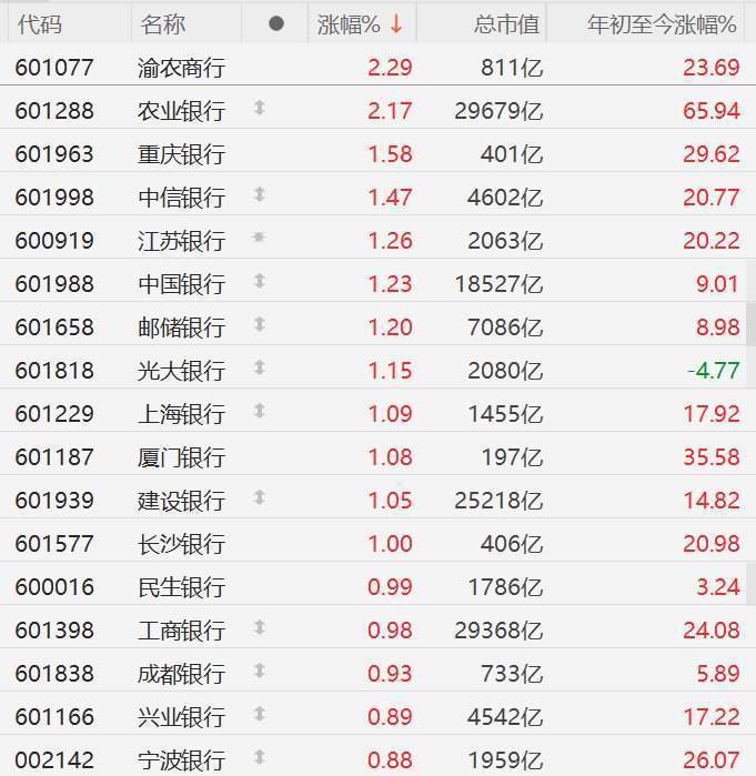 格隆汇11月12日|A股市场逆势上涨,其中,渝农商行、涨超2%,重庆、、、、邮储银行、、、厦门银行、、涨超1%。值得注意的是,再创历史新高,总市值逼近3万亿元。