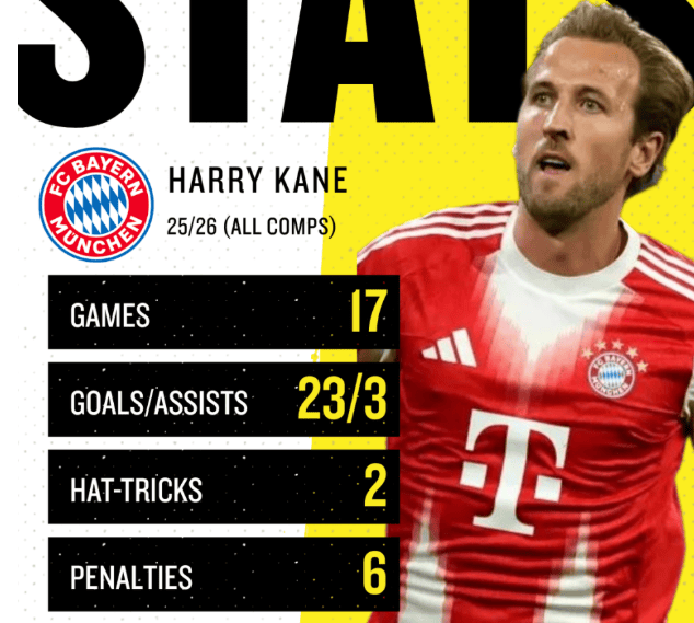 对于凯恩来说,在拜仁进球并不难,这位英格兰国脚在各项赛事中出场113次,攻入108球。本赛季他已经攻入 23 球,有望在三年内第二次赢得欧洲金靴奖。凯恩力争连续三个赛季至少打入 40 球,有望打破他在 2023/24 赛季创下的 44 球的个人纪录。