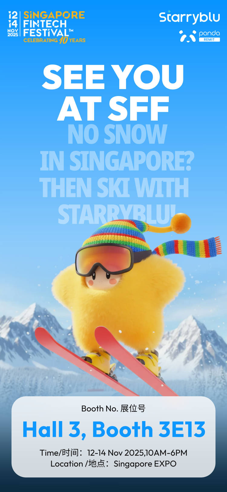 如今,SFF2025(新加坡金融科技节)正在新加坡博览中心火热进行。熊猫速汇母公司Wotransfer携PandaRemit和全新全球金融服务产品Starryblu 共同亮相,为新加坡用户带来高效、透明的跨境汇款方案,同时也向全球用户展示全新的智能金融服务体验。
