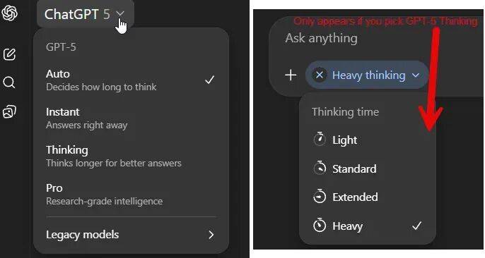 同样的问题,GPT-5 Instant(免费版)「凭直觉」回答,而GPT-5 Thinking Extended在回答前进行了外部检索与推理。
