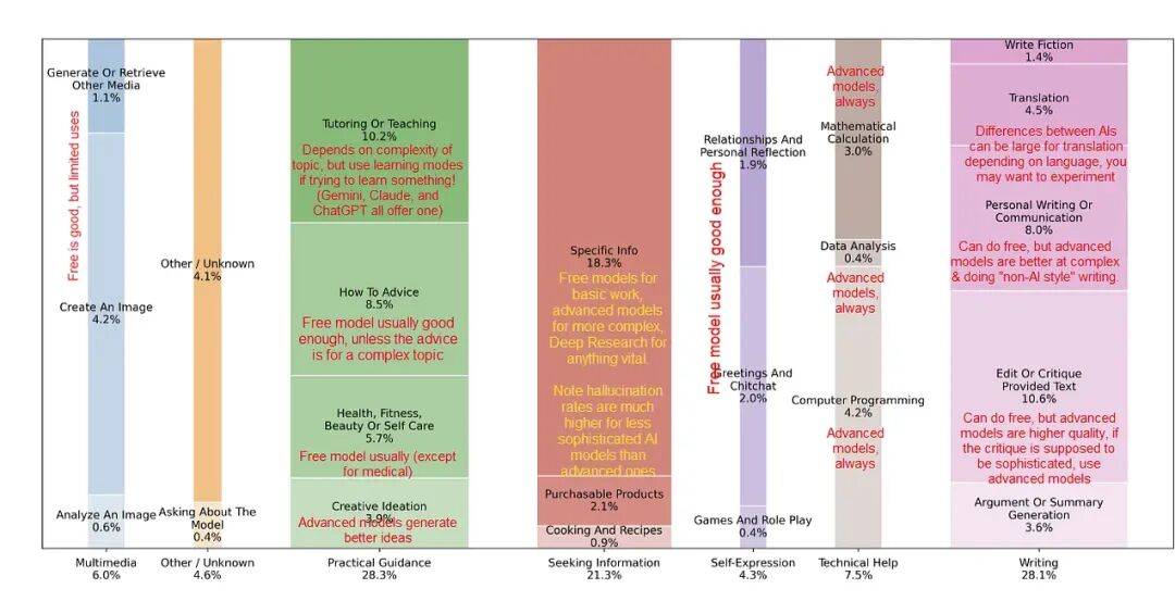不同类型任务对模型复杂度的依赖差异——从「可免费完成」到「必须高级模型」,AI使用正在形成能力阶层。