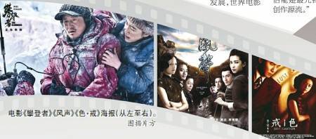 电影《攀登者》《风声》《色·戒》海报(从左至右)。图据片方