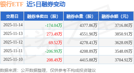 证券之星消息,11月14日,银行ETF(512800)融资买入1.48亿元,融资偿还1.57亿元,融资净卖出893.84万元,融资余额6.09亿元。