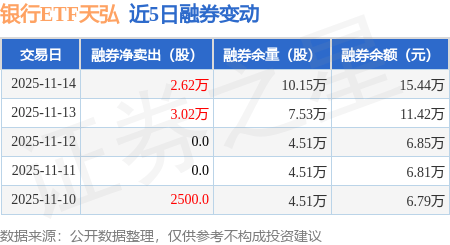 证券之星消息,11月14日,银行ETF天弘(515290)融资买入468.53万元,融资偿还325.28万元,融资净买入143.25万元,融资余额2565.09万元,近20个交易日中有11个交易日出现融资净买入。