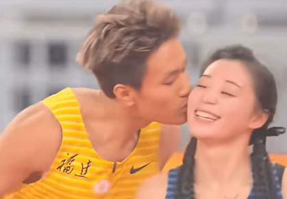 福建队拿下金牌的同时,队员何锦櫶一个箭步冲向亚军四川队的“田径甜妹”刘峡君,在央视镜头前大胆献吻,瞬间引爆全场!