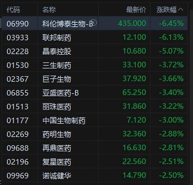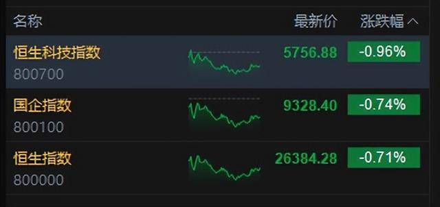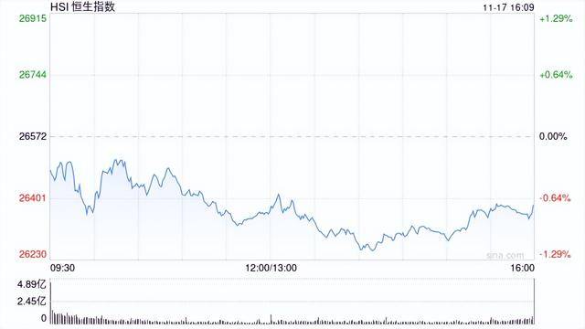 11月17日消息,港股三大指数低开低走。截至收盘,恒生指数跌0.71%,报26384.28点,恒生科技指数跌0.96%,国企指数跌0.74%。盘面上,科网股跌多涨少,联想跌超3%,百度跌超2%,哔哩哔哩、京东跌超1%;军工股涨幅居前,中船防务涨超3%;黄金股普跌,赤峰黄金跌超3%;创新药概念股回调,联邦制药跌超6%;中伟新材上市首日破发。