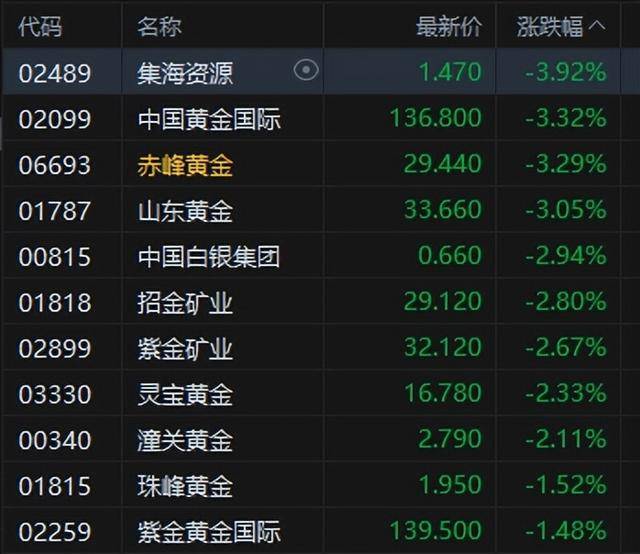 黄金股普跌,赤峰黄金跌超3%。东吴证券指出,上周美联储鹰派理事博斯蒂克宣布将于明年一季度退休,市场认为届时鸽派实力将占优,下半周随着更多理事的“鹰派”言论,降息预期大幅回撤,该行认为当下整体宏观框架仍属做多窗口期,贵金属中期逻辑依旧通顺,看好回调后后市行情。