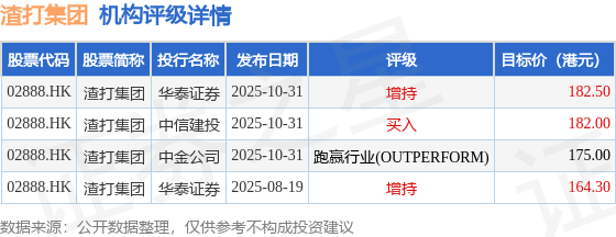 截至2025年11月17日收盘,渣打集团(02888.HK)报收于165.3港元,下跌0.54%,成交量61.34万股,成交额1.01亿港元。投行对该股的评级以增持为主,近90天内共有2家投行给出增持评级,近90天的目标均价为175.95港元。华泰证券最新一份研报给予渣打集团增持评级,目标价182.5港元。