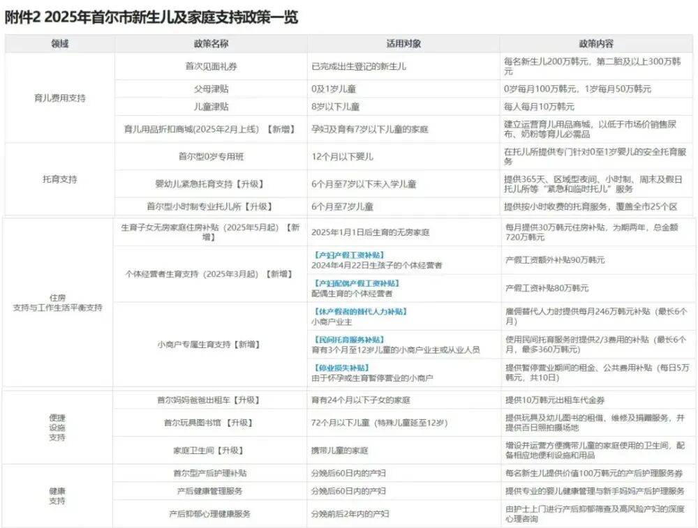 《2025年首尔市新生儿及家庭支持政策一览》 图片可点击放大观看