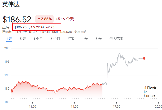 英伟达盘后大涨超5%,带动AMD、台积电等芯片股及Palantir等AI概念股集体上行。
