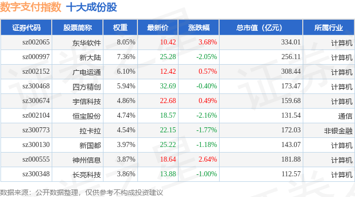 证券之星消息,11月20日,数字支付(980113)指数报收于1790.57点,跌0.29%,成交206.02亿元,换手率2.48%。当日该指数成份股中,上涨的有14家,东华软件以3.68%的涨幅领涨,下跌的有36家,石基信息以4.62%的跌幅领跌。