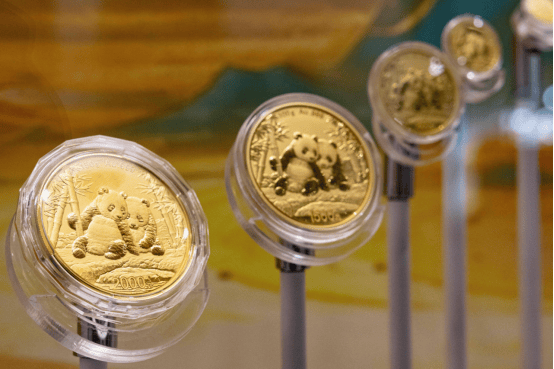 成都博物馆展区的熊猫金币展品