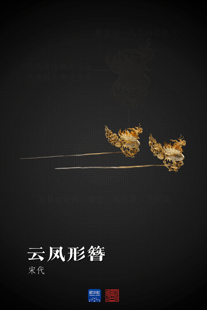 这对凤簪造型与辽代凤簪相似,却以中原流行的工艺制作,充分反映此时期南北饰物风格渐趋融合的历史趋势。