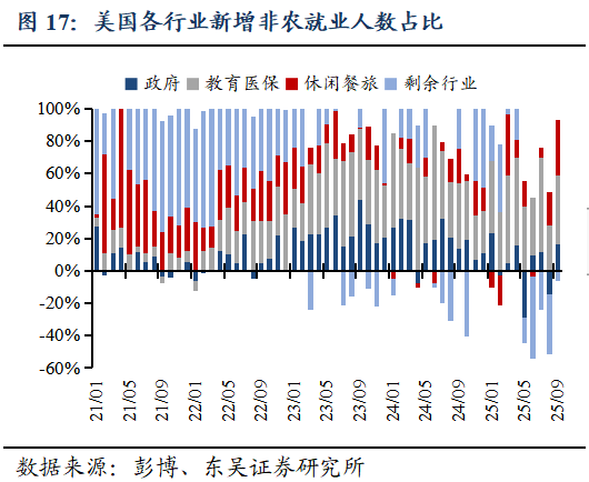 海外经济:9月新增非农好于预期,但前值转负、失业率意外上升,令12月降息略有升温。本周四,BLS延后补发9月美国非农就业数据。①从总量来看,9月非农再现“新增就业大超预期+失业率上升”组合,令市场对12月降息预期一度升温。具体来看,企业端,美国9月非农新增就业+11.9万,预期+5.1万,8月前值由2.2万下修至-0.4万,再度跌落至负区间;前两个月累计下修3.3万;3个月均新增非农+6.2万,前值由+2.9万下修至+1.8万。居民端,因失业人口的大幅增长,9月失业率意外升0.1pct至4.4%。②从结构来看,非农数据存在的结构疲软问题持续存在、并有所恶化:行业结构方面,9月新增的11.9万就业仍然以教育医保为主力,该行业新增5.9万就业,另外休闲餐旅新增4.7万就业,其余私营部门就业形势较为疲软;失业结构方面,永久性失业者人数环比增长。数据发布后,因失业率意外上行、数据结构疲软、8月前值下修至负值等因素,市场的解读偏弱,继续押注非农疲软→联储降息交易,12月降息概率从此前最低的25%回升至40%,到明年底的累计降息幅度来到3.5次。综合来看,增长方面,截至11月21日,亚特兰大联储GDPNow模型对25Q3美国GDP最新预测值为+4.22%,较上周略有上修;纽约联储Nowcast模型对25Q3美国GDP预测值持平+2.31%。