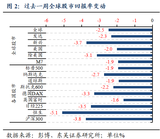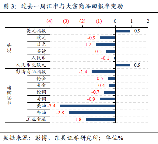 大类资产:美联储鹰派信号、AI泡沫论的发酵、年末买盘疲软等因素共同带动美股大跌,全球股市同步回调。前半周,美联储10月会议纪要显示委员对于12月降息谨慎,美联储官员陆续发表鹰派发言,加之BLS公告11月非农数据将延后至12月16日发布(在12月FOMC会议之后),重要数据的缺席令市场对美联储降息预期大幅回撤,12月降息预期一度降至仅25%;后半周,周四公布的9月非农数据好于预期、但失业率意外上升,降息预期有所升温;但当日在AI泡沫担忧的发酵、年末买盘疲软等因素作用下,美股意外大跌。整体来看,全周(11月17日至11月21日)标普500、纳斯达克指数分别大跌1.9%、2.7%,MSCI全球指数大跌2.5%;10年期美债利率降8.5bps至4.06%,2年期美债利率降9.8bps至3.507%,美元指数升0.89%至100.18,再次向上突破100关口。