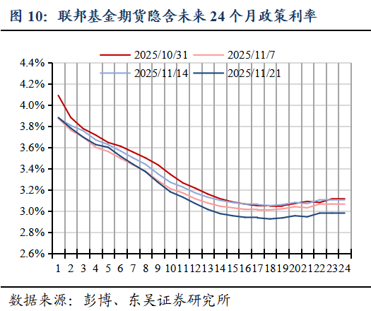 展望看,由于BEA尚未公布GDP、PCE等数据发布时间表,12月10日FOMC会议前,除了PMI等软指标以外,大概率将没有新的重要数据发布。考虑到美联储FOMC委员对于年内进一步降息的审慎态度,在缺失重要数据的背景下,出于谨慎性原则,我们倾向于12月美联储将“跳过”降息,除非资本市场出现更大幅度的调整,引发美联储Fed Put救市。当然,相较于12月降息与否,我们认为重点在于降息更多是被延后而非取消,考虑到四季度以来美国经济整体较为疲软,若12月跳过降息,则美联储有很大概率在明年1月降息。