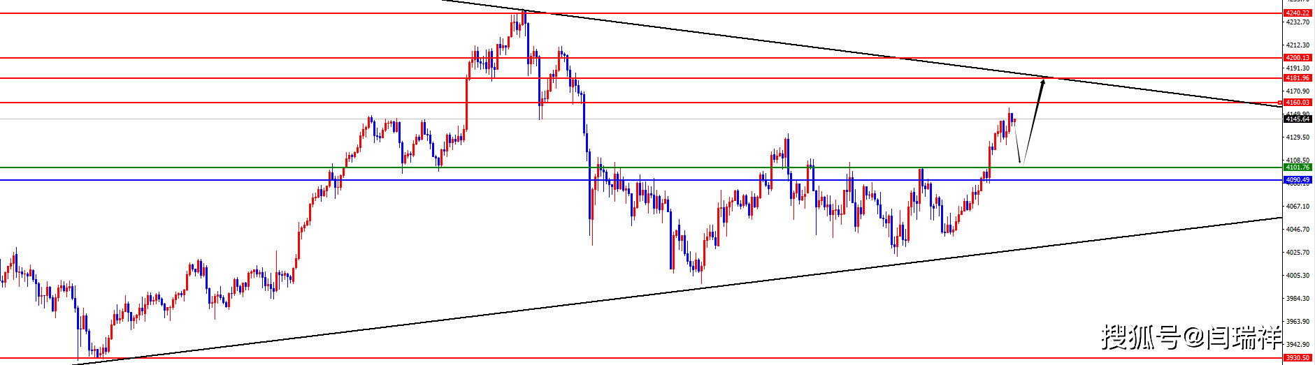 关键分水岭4090-4100区域,价格没有出现反转之前依此位置看多