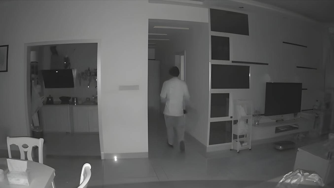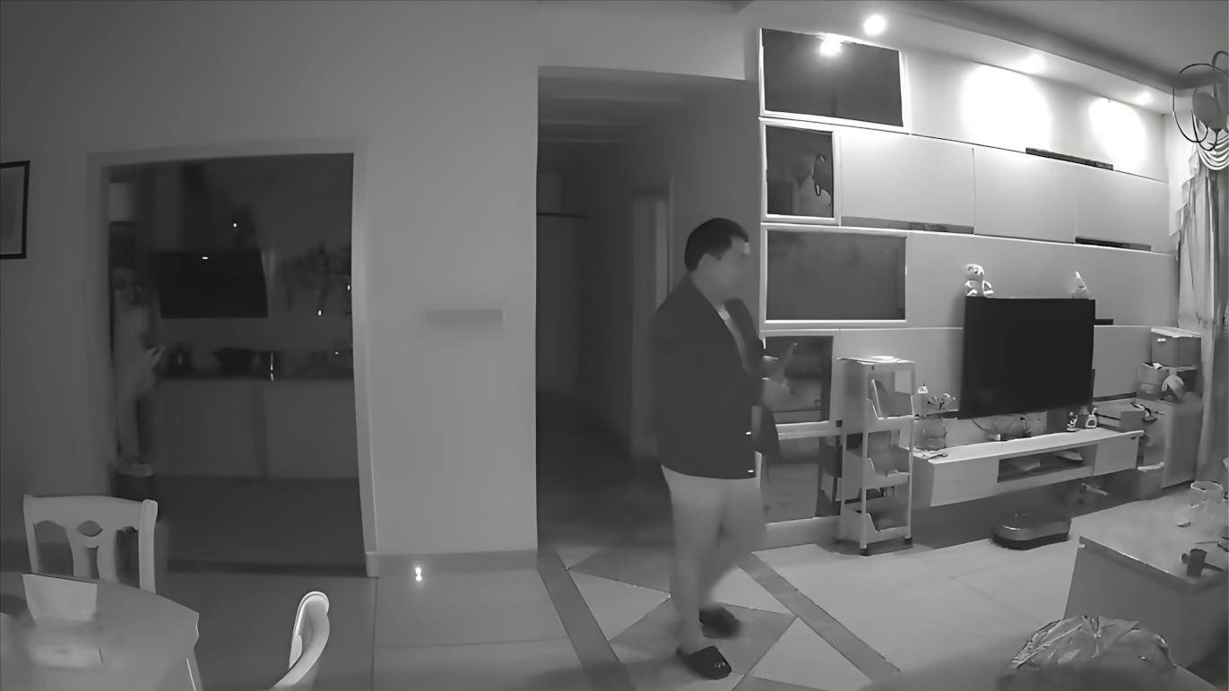 他离开后不久,业主便因听到动静从卧室出来查看。
