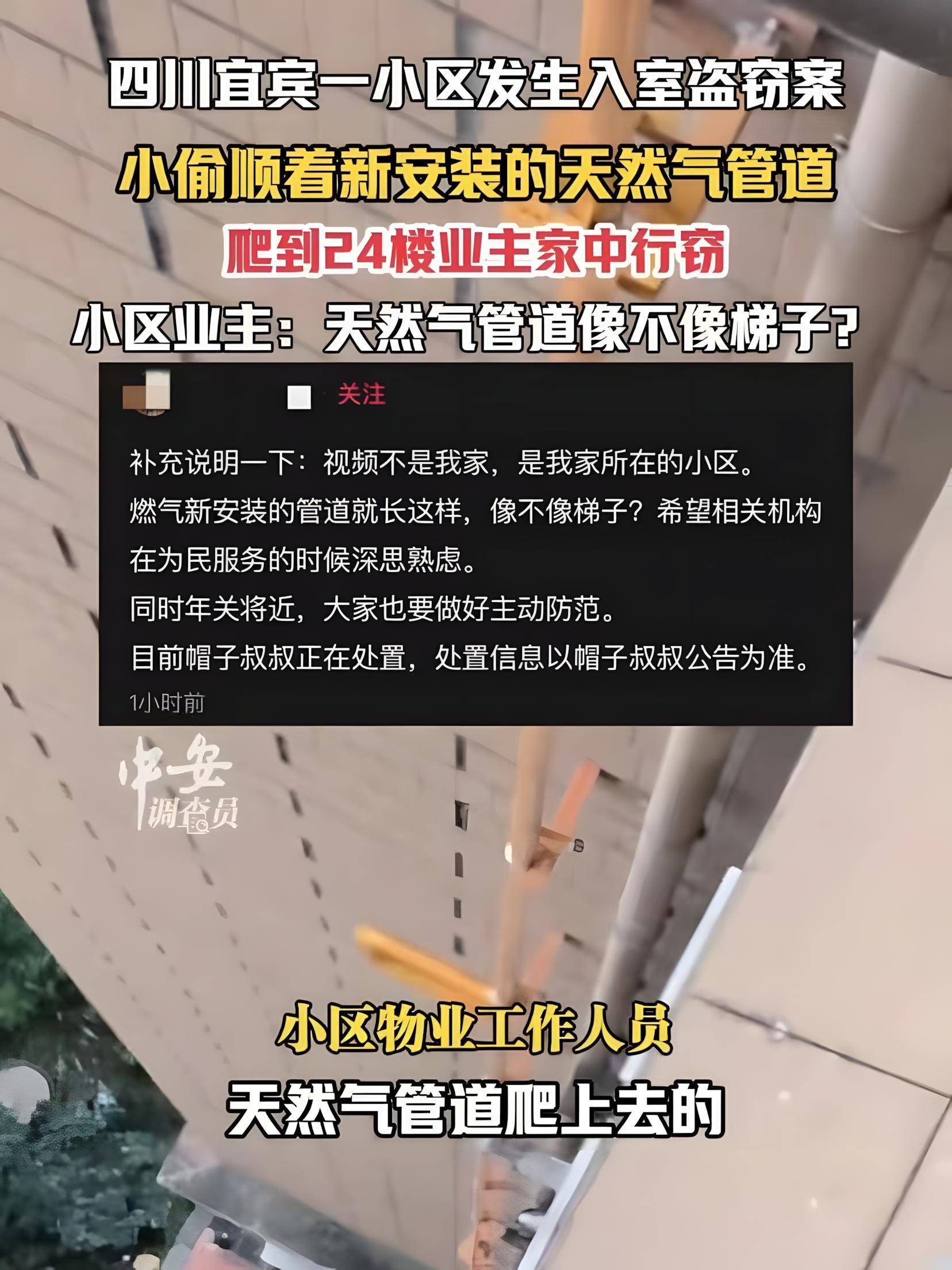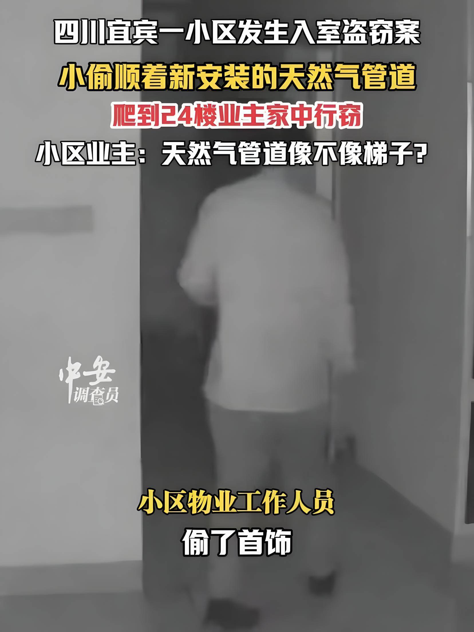 四川宜宾一小区闯入一名小偷,其通过燃气管道分别进入两位业主家中。