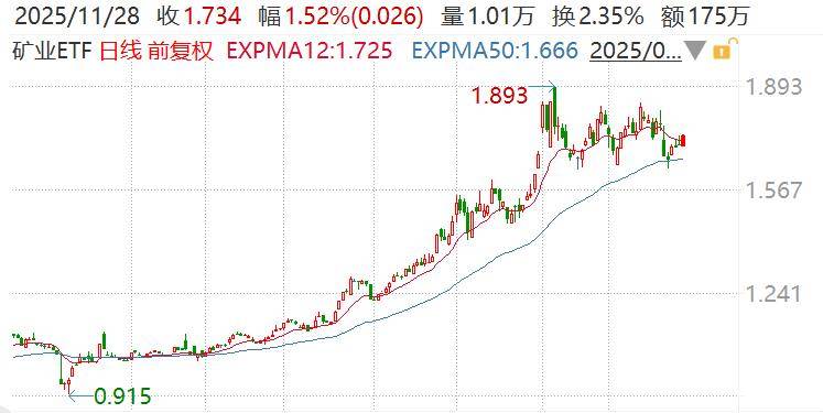 11月28日,有色金属板块盘中再度走强,矿业ETF(159690)涨1.52%,成份股盛新锂能涨超7%,兴业银锡、永兴材料、华友钴业、赤峰黄金、中矿资源等涨超3%。