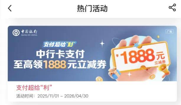 报名路径:中国银行APP - 热门活动 - 「支付超给“利”」