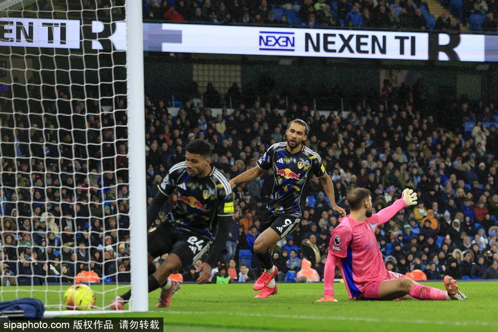 第49分钟,曼城后场传球被断,随后努内斯解围不远,勒温捅射扳回一城,利兹联1-2。
