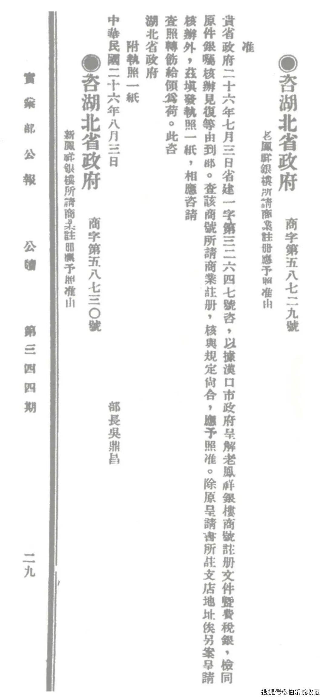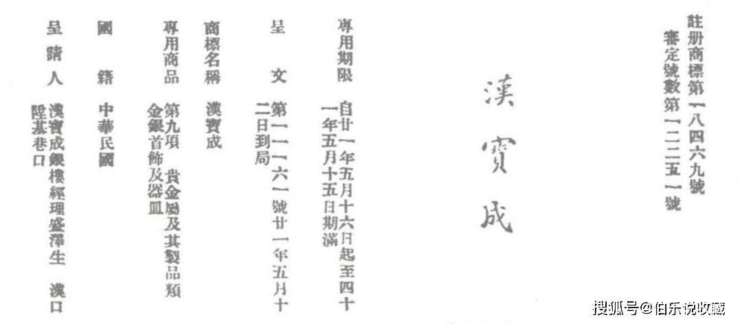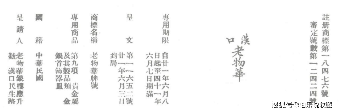 民国实业部批复的汉口“新、老凤祥”银楼商业注册