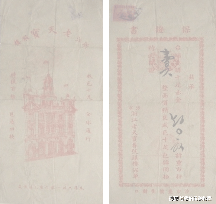 “汉口老天宝”开业于1906年,是“浙江帮”宁波商人在汉口较早开业的银楼之一。据《湖北民俗志》记载,“老天宝”银楼资金雄厚,注重信誉,其金条以色准量足而闻名,其业主周赞卿为历届同业公会主要负责人之一。无怪乎“老天宝”能位列“汉口四大金号银楼”。