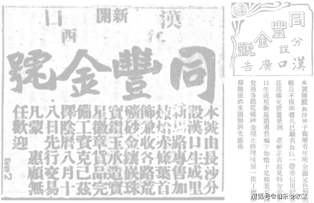 “汉口同丰”金号开业广告两则