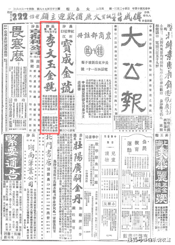 长沙老号“李文玉金号”业务广告