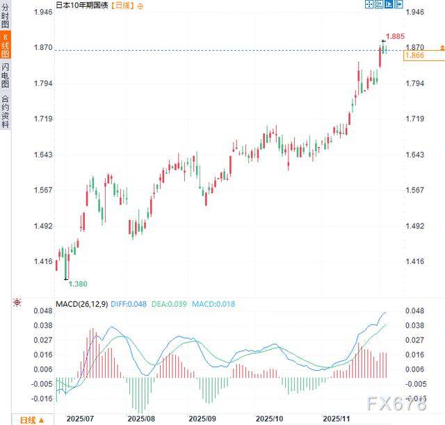 汇通财经APP讯——随着周二(12月2日)日本10年期国债收益率超过1.85%,且一度达到2006年以来的最高水平,市场认为这标志着日本央行新一轮紧缩周期的开始。然而实际基本面却有不符之处。