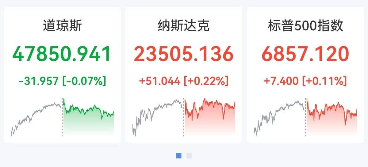 美东时间周四(4日),美股三大指数收盘涨跌不一。截至收盘,道琼斯工业平均指数比前一交易日下跌31.96点,收于47850.94点,跌幅为0.07%;标准普尔500种股票指数上涨7.4点,收于6857.12点,涨幅为0.11%;纳斯达克综合指数上涨51.05点,收于23505.14点,涨幅为0.22%。作为最能代表美股市场小盘股的指标,罗素2000指数收涨0.76%,突破10月27日创出的前高。