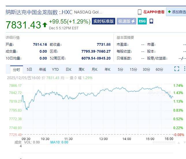 纳斯达克中国金龙指数收涨1.29%,热门中概股多数上涨,百度涨超5%,万国数据涨超4%,小鹏汽车、爱奇艺、好未来涨超2%。