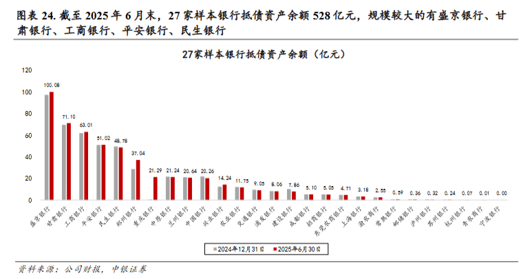 从抵债资产余额看,2025年6月末27家样本银行合计528亿元,较2024年末增长6.0%。