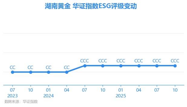 日前,华证指数公布了新一期(2025年10月31日)的ESG评级结果,湖南黄金(002155.SZ)获得CCC评级(华证指数评级为C起至AAA九档,C为最低档,AAA为其最高一级评级/AA为其第二档),上一期(2025年7月31日)ESG评级为CCC。本期ESG评级在206家金属与采矿行业A股上市公司中排名第139(上一期排名第164)。