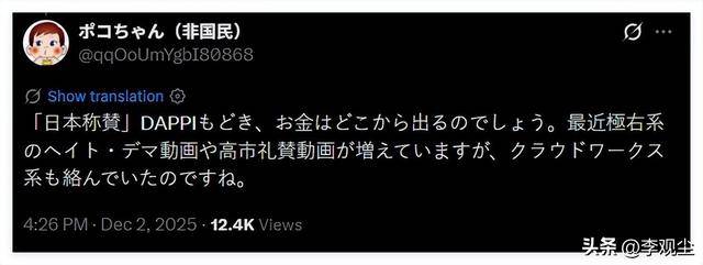 普通日本网民的追问,恰恰戳中了事件的关键,资金来源的模糊性,让这场舆论闹剧更添几分可疑色彩。