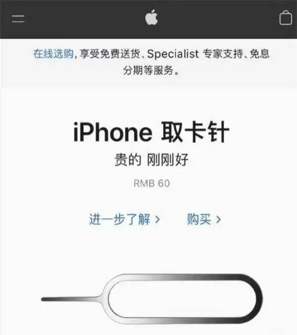 DoNews12月9日消息,据封面新闻报道,近日,贵金属市场持续变化,而苹果官网上一根售价60元的取卡针,因网络传闻其“铂金材质、回收超300元”,引发了二手交易平台上的投机热潮。在成都一家二手电子产品交易店内,店员小张向记者表示,“最近很多人来问这个,我们店里就剩这最后一根了。”