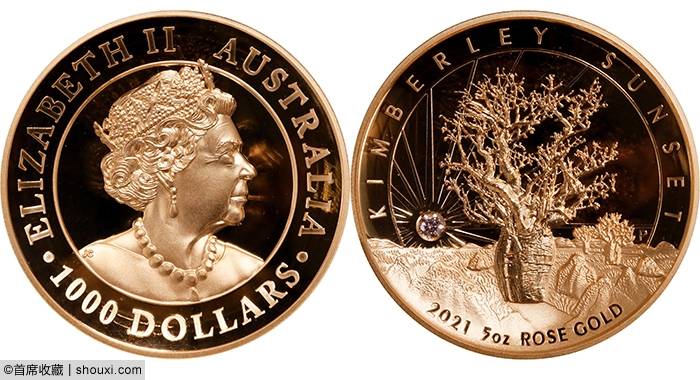 安南明命通宝三钱金币,NGC-UNC,图案精美,估价1.5万-1.8万美元;安南嗣德通宝龙文,PCGS-MS62,浅橙包浆,估价8000-12000美元;1934年澳洲银精制套装一组4枚,估价1.5万-2.5万美元;2021-P年澳大利亚5盎司玫瑰金币,NGC-PF70,镜面底板,高浮雕,首日发行,估价2万-3万美元。